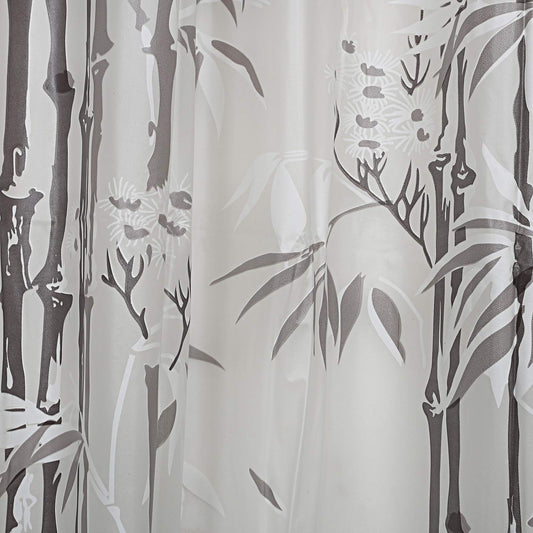 Bamboo Design Waterproof PVC Shower Curtain with 8 Hooks (CTKTC33784, Grey, 54 x 84 inch)