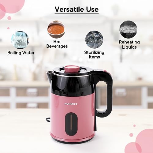 FUMATO RapidHeat Pro Electric Kettle 1.8 L, Pink& Stainless Steel Water Bottle 1 Litre Silver