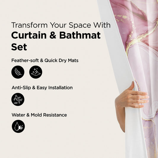 Shower Curtain (180X180 cm) & Bathmat 3 Pcs Set|6ft|Creative Vibrant Coloured Polyster Curtain Sets with Non-Slip Bath mats for Bathroom|Easy-Slide Curtains|Quick Dry,Soft Mats