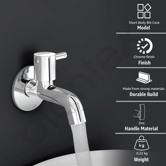 Single Lever Bib Cock Faucet - Durable, Easy to Install | 1 Piece | Short Body | Silver
