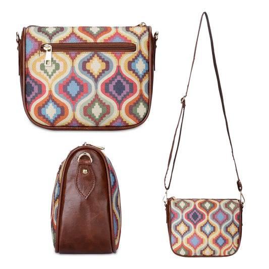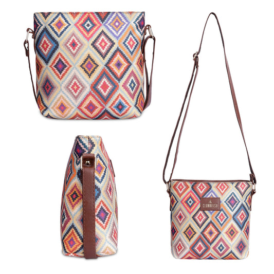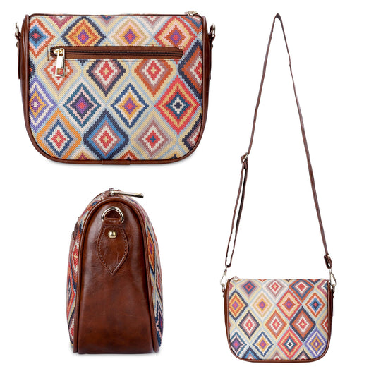 THE CLOWNFISH Garnet Series Printed Handicraft Fabric & Tapestry Crossbody Sling Bag for Women Ladies Single Shoulder Bag Shoulder Belt (Multicolour-Diamond)