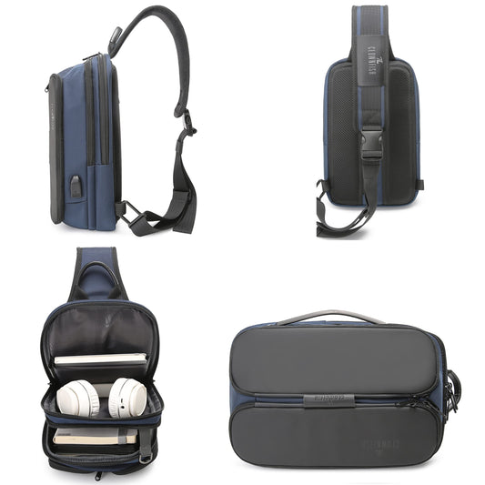 THE CLOWNFISH Single Shoulder Water Resistant Antitheft Crossbody Bag Chest Bag External USB Interface Single Shoulder Bag Chest Pack (Blue)