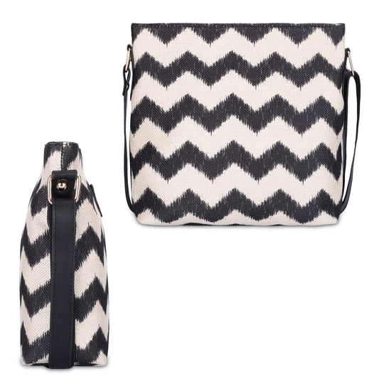 THE CLOWNFISH Patricia Series Sling for Women Faux Leather Casual Ladies Single Shoulder Bag For Women Crossbody Bag for College Girls (Black-Wave Design)