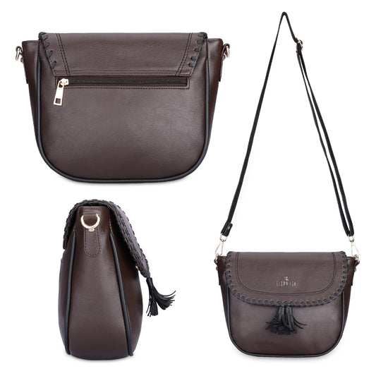 THE CLOWNFISH Rochelle Series Faux Leather Sling Bag for Women Snap Flap Closure Style Casual Single Shoulder Bag For Ladies Crossbody Bag for College Girls (Dark Brown)