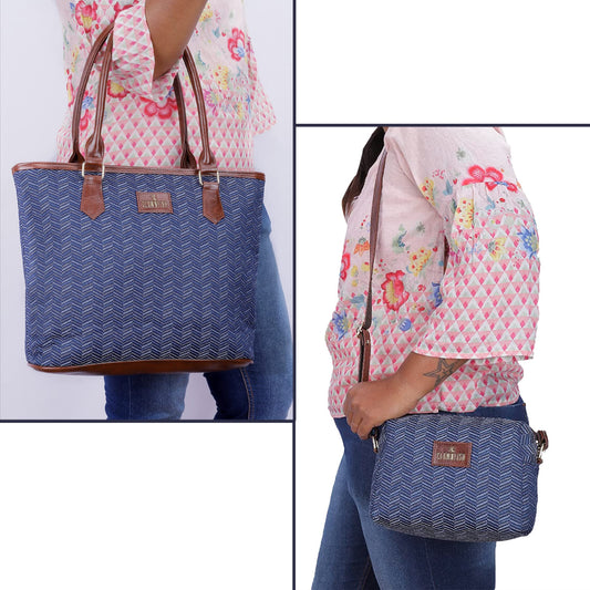 Combo: Adelina Sling & Justina Handbag - Lightweight, Utility Style | 2 Pockets | Medium | Blue Stripes