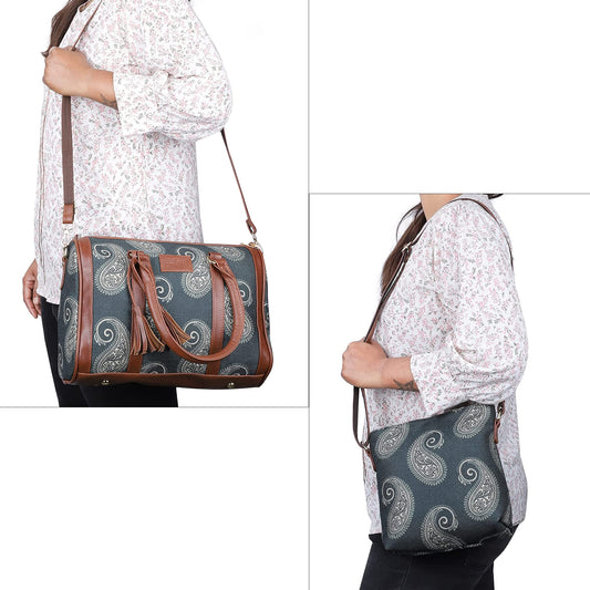 The Combo of Lorna Printed Handicraft Fabric Handbag and Aahna Polyester Crossbody Sling bag for Women (Ash Grey)