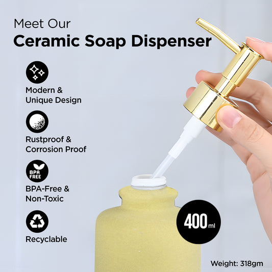 Ceramic Soap Dispenser for Bathroom (350ML) Soap Dispenser for Kitchen | Liquid Soap Dispenser | Soap Dispenser for Wash Basin Scratch Proof Smooth Pump for Bathroom Decor | Handwash Dispenser