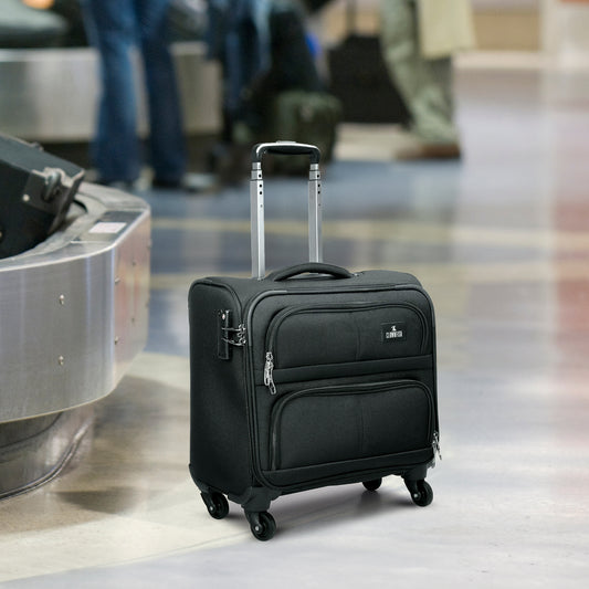 THE CLOWNFISH Trailblazer Series Luggage Polyester Soft Case Four Wheel Suitcase 15.6 inch Laptop Ipad Trolley Bag with TSA Lock - Black (44 cm, 17.3 inch)