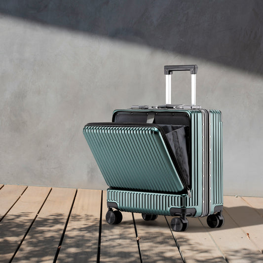 THE CLOWNFISH JetSetter Series Carry-On Luggage PolyCarbonate Hard Case Suitcase Eight Spinner Wheel 14 inch Laptop Trolley Bag with TSA Lock & USB Charging port- Dark Green (47 cm-18.5 inch)