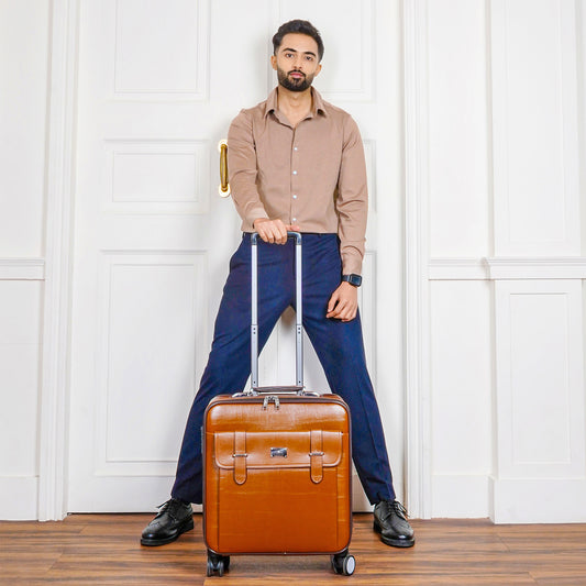 Elite Series Laptop Trolley Bag | Overnighter Trolley Bags with Wheels for Travel | Business Cabin Crew Suitcase with Laptop Compartment | 18 inches| 36 Liters | Brown