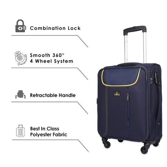 THE CLOWNFISH Abraham Luggage Polyester Soft Case Expandable Capacity Suitcase Four Wheel Trolley Bag - Navy Blue (57 cm, 22 inch)