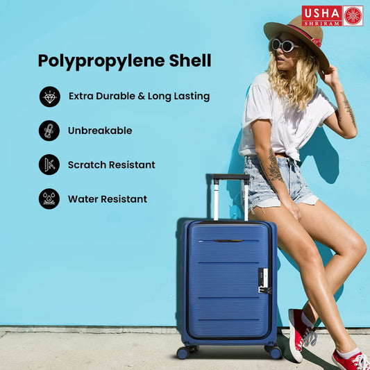 Check-in Bag (24 inch - 65cm) Collapsible Luggage Bag | Polypropylene Shell | Navy Blue | Suitcase for Travel | 360 Degree Wheel & Lock | Foldable Trolley Bag for Travel