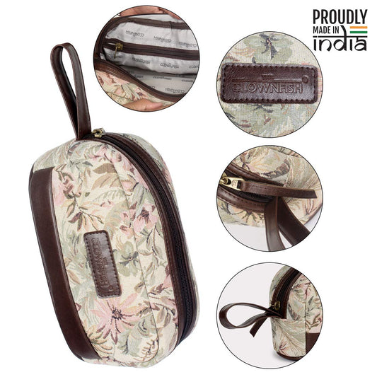 THE CLOWNFISH Men & Women Travel Pouch Toiletry Bag Shaving Kit Bag Toiletry Cosmetic Bag Travel Kit Travel Pouch Travel Kit Jolly Series (Brown-Floral), 10 Centimeters, Standard