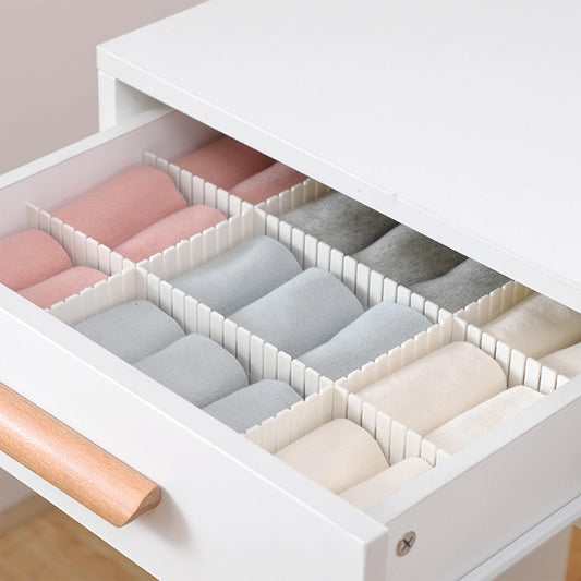 Homestic Drawer Storage Organizer - Modular Partition for Socks, Belt, Innerwear, Ties, & Wardrobe Accessories - White