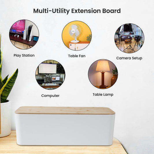Extension Board Cable Management Box | Neatly Organize, Hide, and Manage Power Strips, Cords, and Wires - Large Storage Solution for Desks, TVs, USB Hubs, and Computers | White