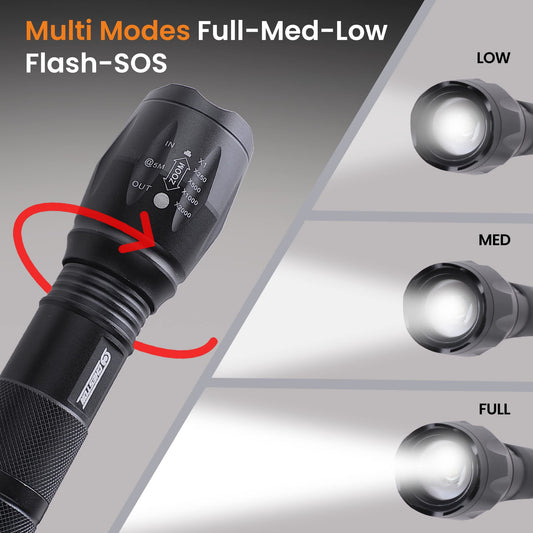 CHESTON LED Flashlight White Light | Compact | 300 Lumen | 50m Range | 6 - Month Manufacturing Warranty | Multiple Mode Full - Med - Low - Flash - SOS | Water Resistant IPX4