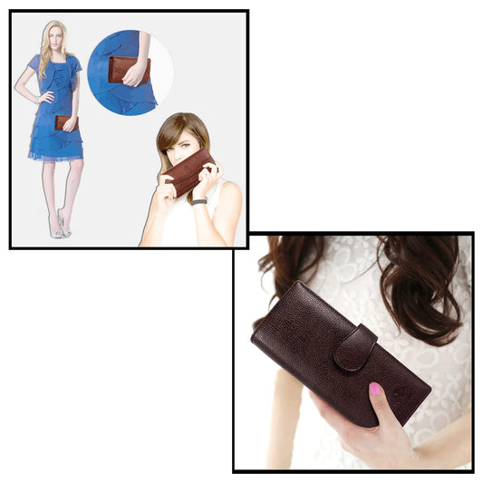 Ladies Wallet - Stylish Vegan Leather Purse with Shoulder Belt | Slim Design | Dark Brown