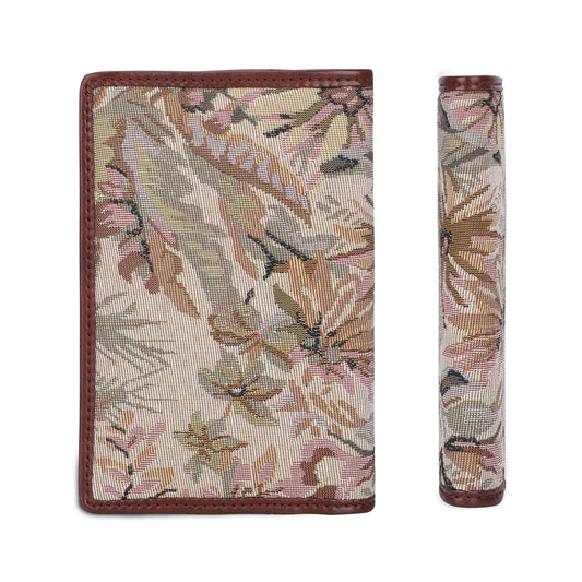 THE CLOWNFISH Voyage Vault Series Tapestry Fabric & Faux Leather Unisex Dual Passport Wallet Travel Document & Cash Organizer with Multiple Card Holder Slots & Button Flap Closure (Brown-Floral)