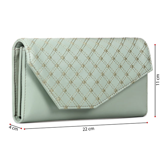 THE CLOWNFISH Helena Collection Womens Wallet Clutch Ladies Purse with Embroidery On Flap (Pistachio Green)