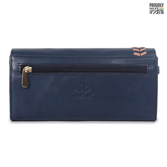 THE CLOWNFISH Myra Collection Womens Wallet Clutch Ladies Purse Sling Bag with Card slots (Navy Blue)