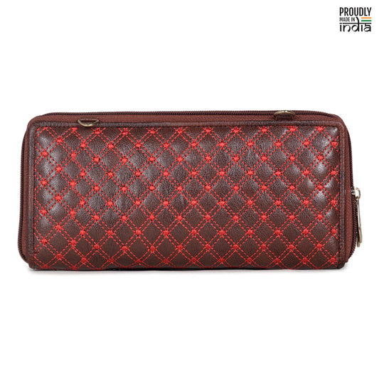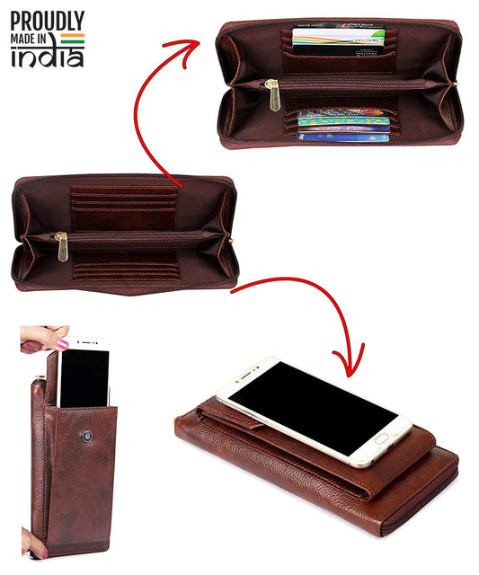 THE CLOWNFISH Trivia Vegan Leather Ladies Wallet Sling Bag with Zip Around Front Pocket (Dark Brown)