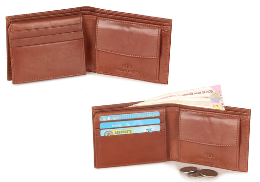 THE CLOWNFISH RFID Protected Genuine Leather Bi-Fold Wallet for Men with Multiple Card Slots, Coin Pocket & Transparent ID window (Tan)