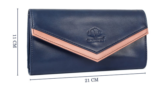 THE CLOWNFISH Lucia Collection Womens Wallet Clutch Ladies Purse with Multiple Card Slots (Navy Blue)