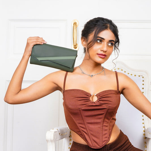 THE CLOWNFISH Ivana Series Womens Wallet Clutch Ladies Purse Sling Bag with multiple card slots (Olive Green)