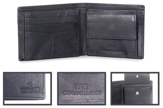 The RFID Protected Genuine Leather Bi-Fold Wallet for Men with Multiple Card Slots, Coin Pocket & ID Window (Navy Blue)