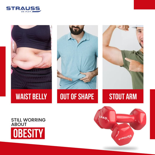 Strauss Unisex Vinyl Dumbbells Weight for Men & Women | 2Kg (Each)| 4Kg (Pair) | Ideal for Home Workout and Gym Exercises (Red)