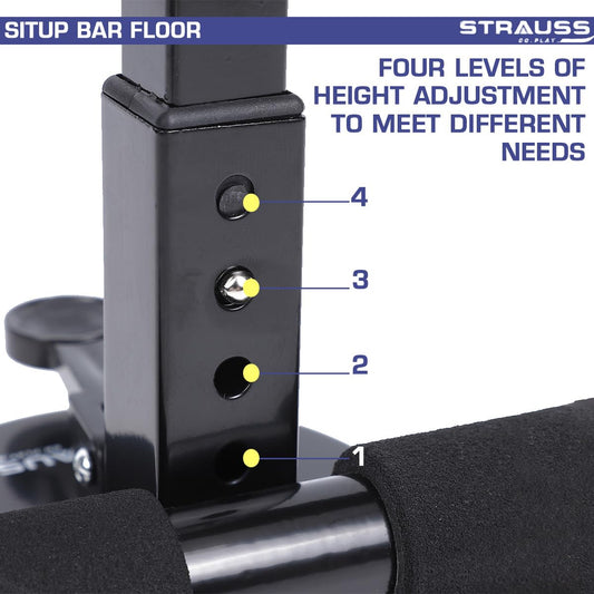 STRAUSS Sit-Up Bar | Portable Bar with Foam Handle and Rubber Suction | Push-ups Assistant Device for Weight Loss | Ideal for Abs Home Workout & Abdominal Curl Exercise Trainer, (Black)