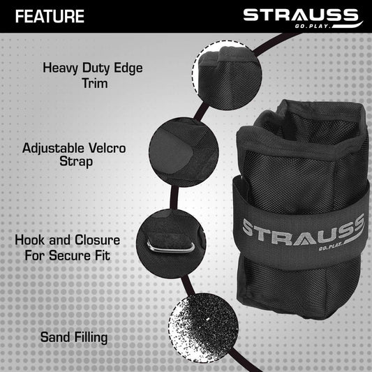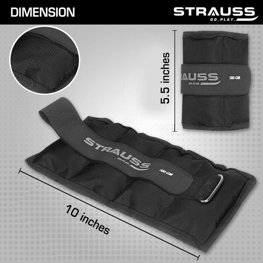 Strauss Adjustable Ankle/Wrist Weights 0.5 KG X 2 | Ideal for Walking, Running, Jogging, Cycling, Gym, Workout & Strength Training | Easy to Use on Ankle, Wrist, Leg, (Black)