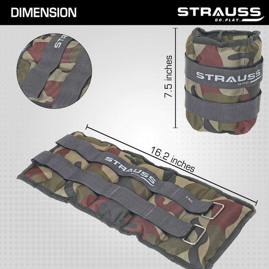 Strauss Adjustable Ankle/Wrist Weights 2 KG X 2 | Ideal for Walking, Running, Jogging, Cycling, Gym, Workout & Strength Training | Easy to Use on Ankle, Wrist, Leg, (Camouflage)