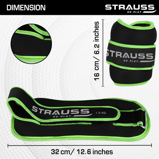 Strauss Ankle Weights for Exercise & Fitness|Adjustable Round Belt Design|Leg Weights for Strength Training,Walking Running,Jogging,Exercise & Gym Workout|Comfortable & Durable|1.5Kg(Each)(Green Pair)