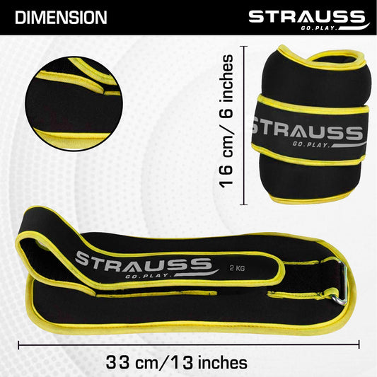 Strauss Adjustable Ankle/Wrist Weights 2 KG X 2 | Ideal for Walking, Running, Jogging, Cycling, Gym, Workout & Strength Training | Easy to Use on Ankle, Wrist, Leg, (Black)