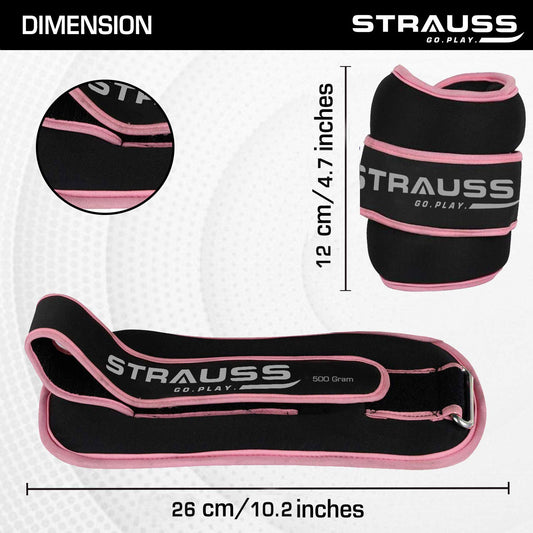 Strauss Adjustable Ankle/Wrist Weights 2.5 KG X 2 | Ideal for Walking, Running, Jogging, Cycling, Gym, Workout & Strength Training | Easy to Use on Ankle, Wrist, Leg, (Pink)