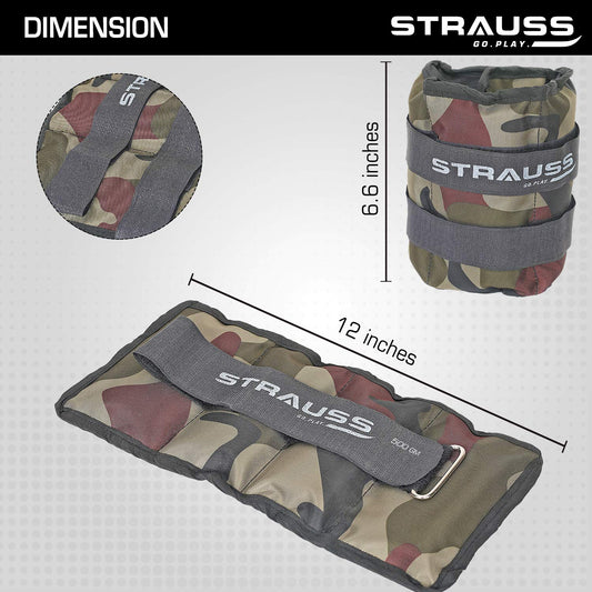 Strauss Ankle/Wrist Weights 0.5 KG X 2 | Ideal for Walking, Running, Jogging, Cycling, Gym, Workout & Strength Training | Easy to Use on Ankle, Wrist, Leg, (Camouflage)
