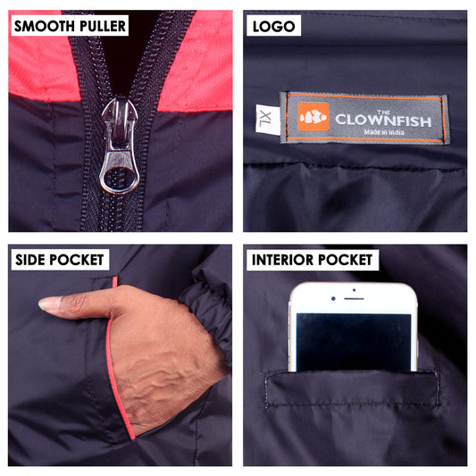 THE CLOWNFISH Men's Activewear Jacket - Stand Collar, Zipper | 3 Pockets | M Size | Red and Black