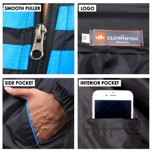 THE CLOWNFISH Men's Activewear Jacket (Black with Blue Stripes) XL Size