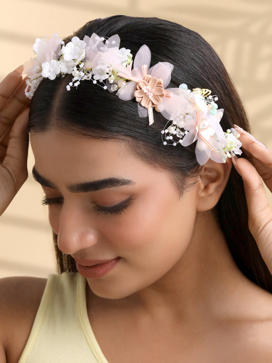 Tiara for Women and Girls Floral Hair Vine for Women White Bridal Hair Vine Tiara Headband Hair Accessories Wedding Jewellery for Girls and Women Bridal Hair Accessories for Wedding.
