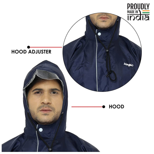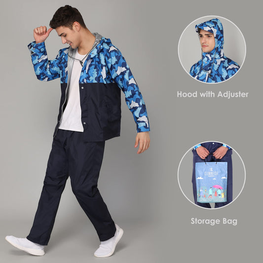 THE CLOWNFISH Rain Coat Waterproof Raincoat With Pants Polyester Reversible Double Layer Standard Length Rain Coat For Men Bike Rain Suit Jacket Suit Inner Mobile Pocket With Storage Bag(Blue Xxl)
