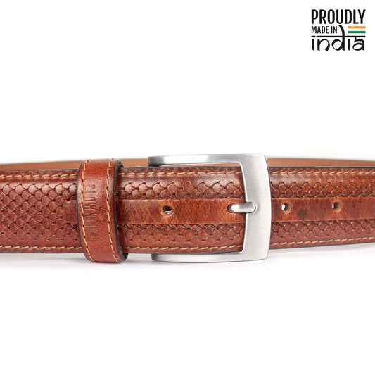 THE CLOWNFISH Men's Genuine Leather Belt with Textured Design - Tan (Size - 40 inches)