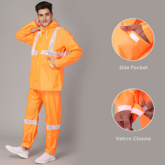 THE CLOWNFISH Rain Coat for Men Waterproof for Bike Raincoat for Men with Hood. Set of Top and Bottom. Debonair Series (Orange, X-Large)