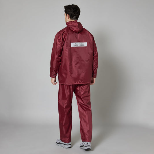 THE CLOWNFISH Rain Coat for Men Waterproof Raincoat with Pants Polyester Reversible Double Layer Rain Coat For Men Bike Rain Suit Rain Jacket Suit Inner Mobile Pocket with Storage Bag (Maroon L)