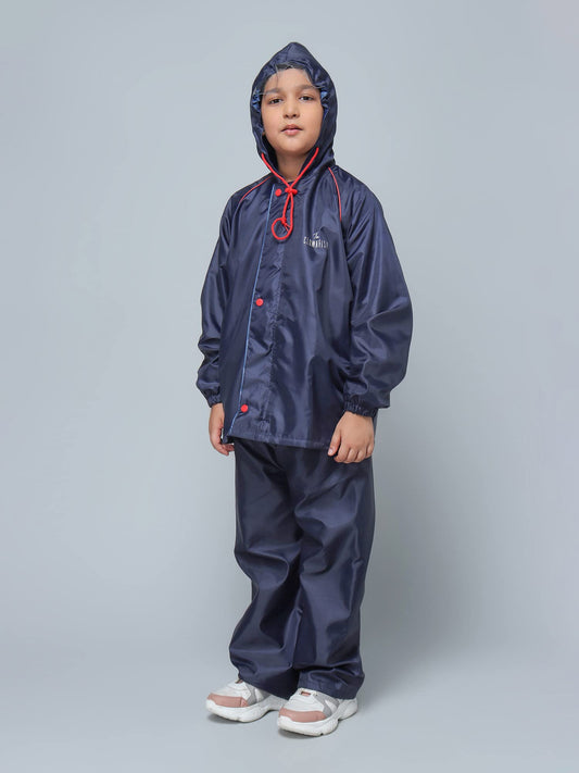 THE CLOWNFISH Duke Series Kid's Waterproof Polyester Double Coating Reversible Standard Length Raincoat With Hood And Reflector At Back Set Of Top And Bottom Printed Plastic Pouch Age-5-7 Years(Blue)