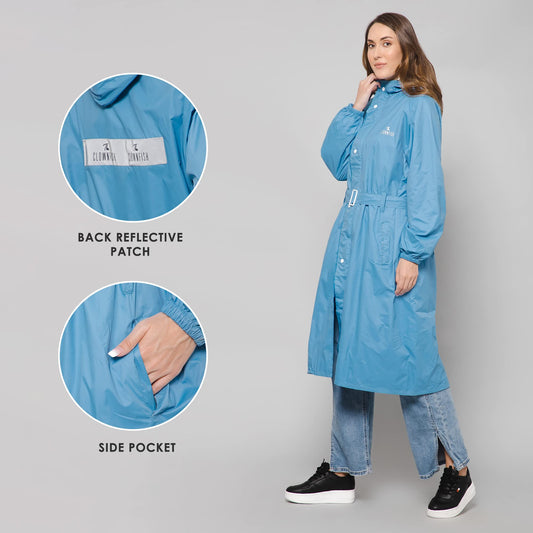 THE CLOWNFISH Polyester Raincoats For Women Rain Coat For Women Longcoat Raincoat For Ladies Waterproof Reversible Double Layer. Aquashield Series (Skyblue, Xx-Large)