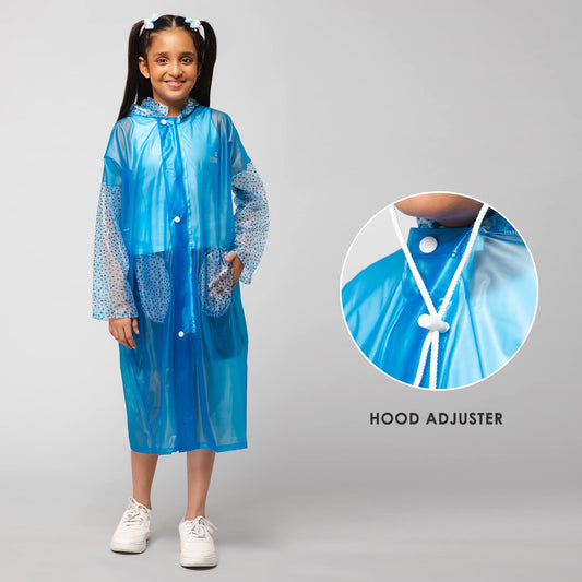 THE CLOWNFISH Unisex Kids Waterproof Longcoat with Adjustable Hood | Single Layer PVC | Age 4-5 Years | Sky Blue