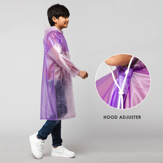 THE CLOWNFISH Toon Caper Series Kids Waterproof PVC Longcoat with Adjustable Hood & Extra Space for Backpack/Schoolbag Holding. Printed Plastic Pouch. Kid Age-4-5 years (Milky White -Transparent)