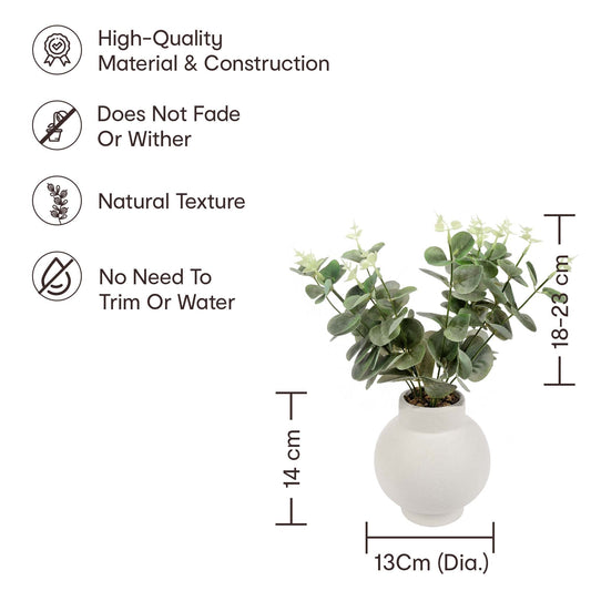 Artificial Eucalyptus Plant with White Vase | Decorative Potted Plant for Home & Office | Natural Look