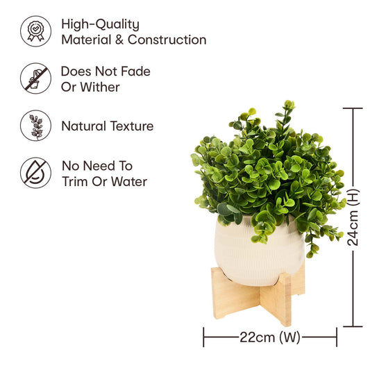 Artificial Plant & Ceramic Pot with Wooden Stand | Natural Look | Home & Office Décor | Size: 15cm